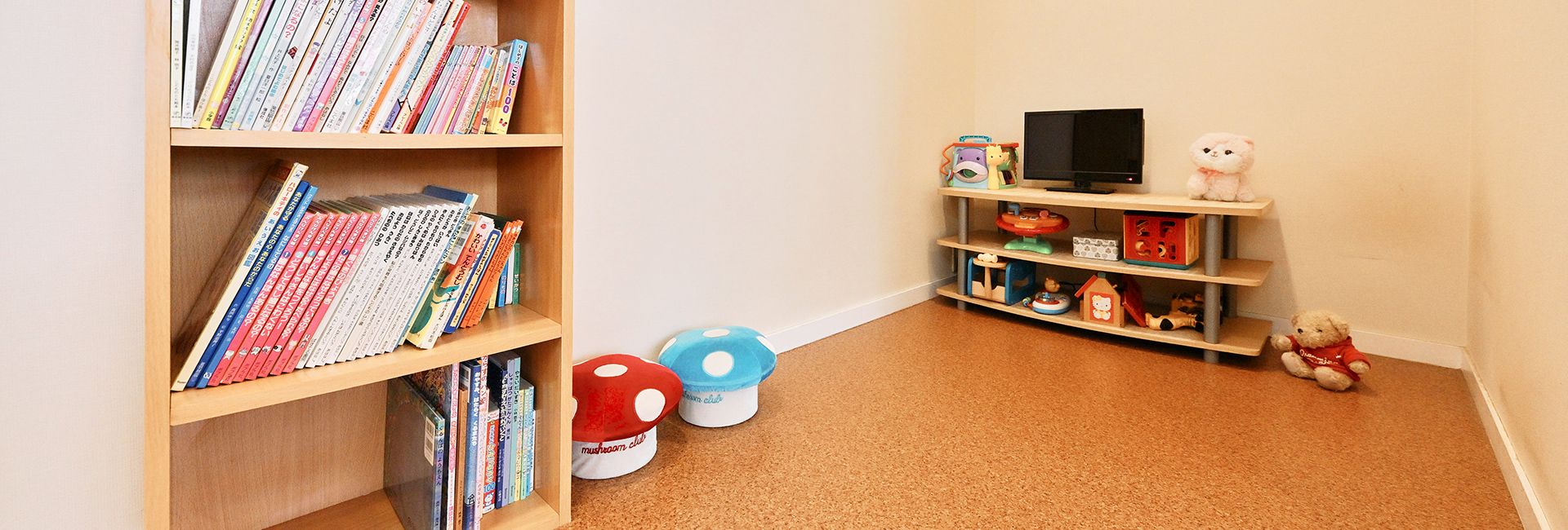 お子さまが待ち時間を退屈せずに過ごせるように、おもちゃや絵本などをご用意したキッズスペースを設置しています。