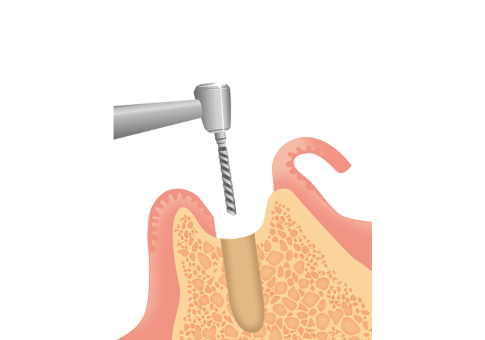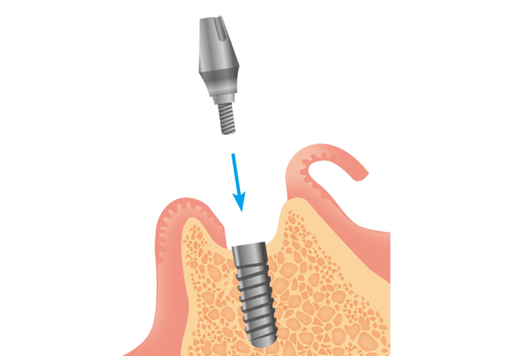 骨を削り、インプラント体に人工歯の土台となるアバットメントを装着します。 -