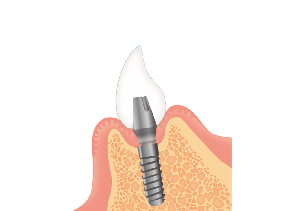 切開した歯ぐきの傷が治った後にアバットメントの上に人工歯を装着し、治療を完了します。