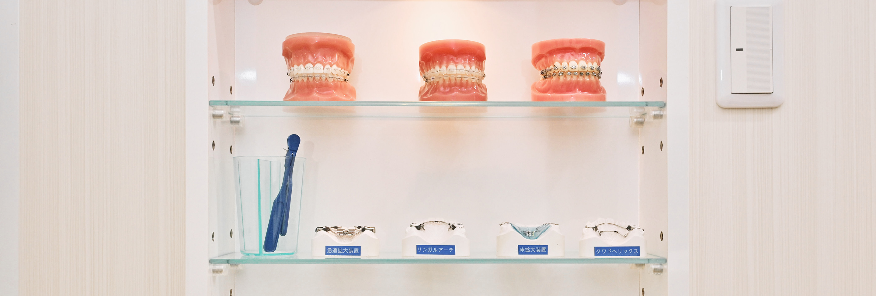 矯正装置を装着すると歯と装置の境目に汚れが溜まりやすくなります。お口の中を清潔に保っていただくために、当院では治療開始前に口腔衛生指導(歯磨き指導)を行っています。歯磨きがしっかりとできるようにしてから、矯正治療を開始します。